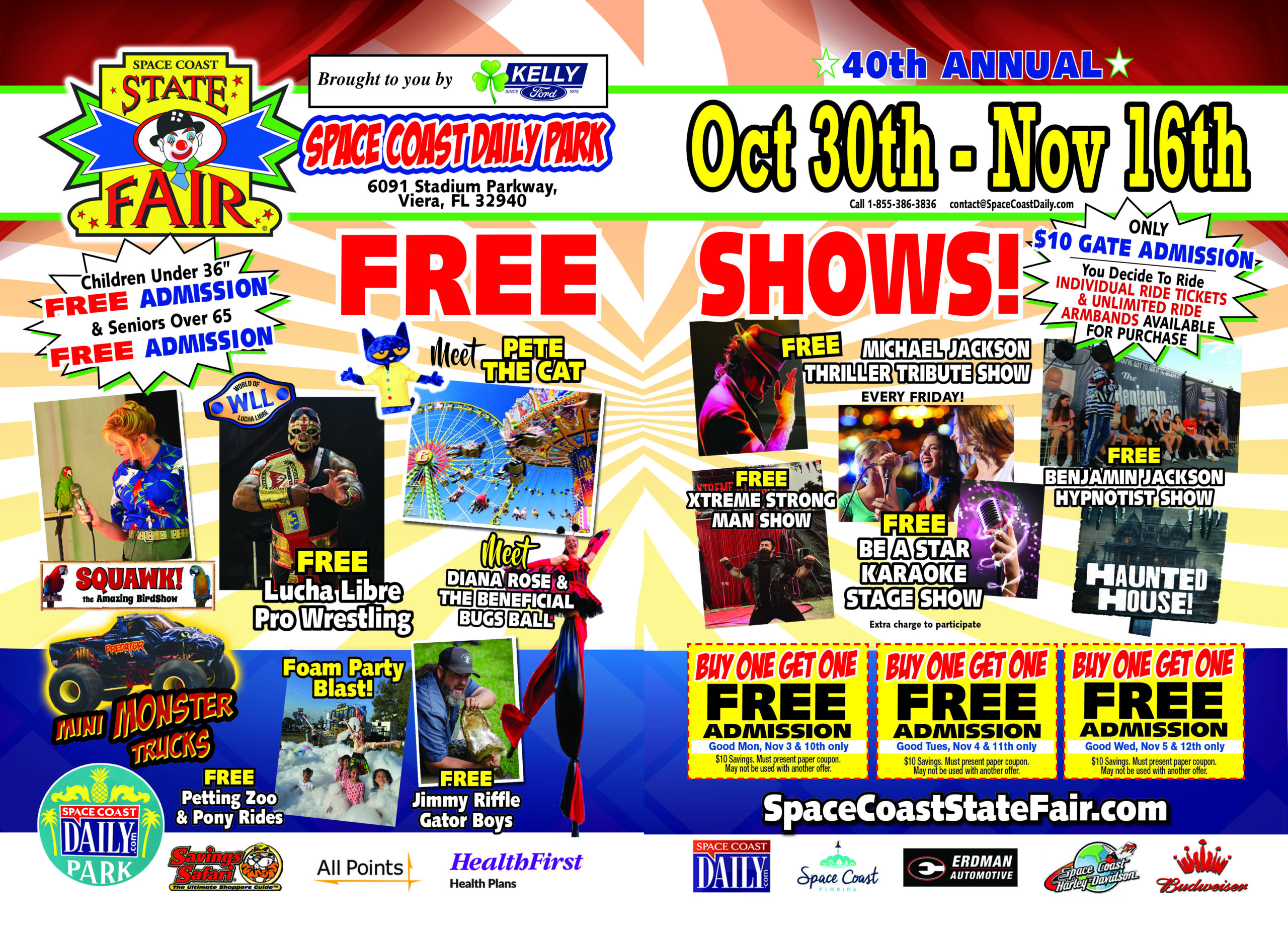 SUNDAYS: “Health First Health Plans Sundays”: All Health First Health Plans members and Health First associates will receive free admission and free shows at the Space Coast State Fair on Sunday, Nov. 2, Sunday, Nov. 9 and on Sunday, November 16. courtesy of Health First Health Plans.